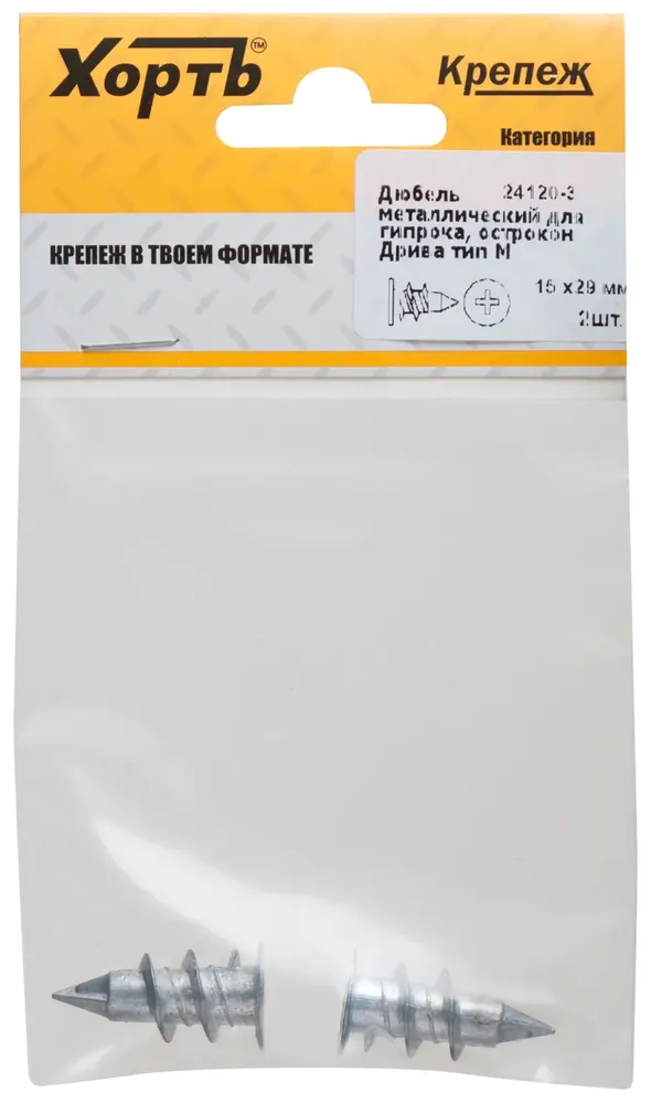 Купить Дюбель металлический для гипрока, острокон.Дрива тип М, 14 х 28 мм, ( фасовка 2 10.) по выгодным ценам в Москве