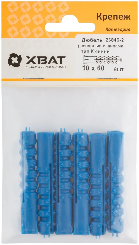Купить Дюбель распорный с шипами тип К синий 10 х 60 (фасовка 6 10.) по выгодным ценам в Москве