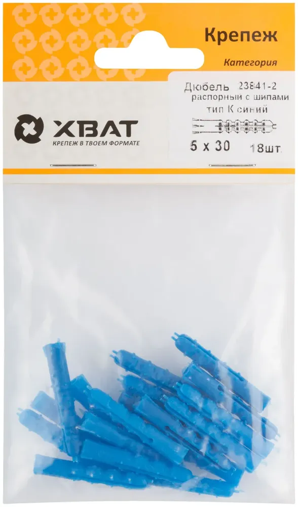 - Дюбель распорный с шипами тип К синий 5 х 30 (фасовка 18 10