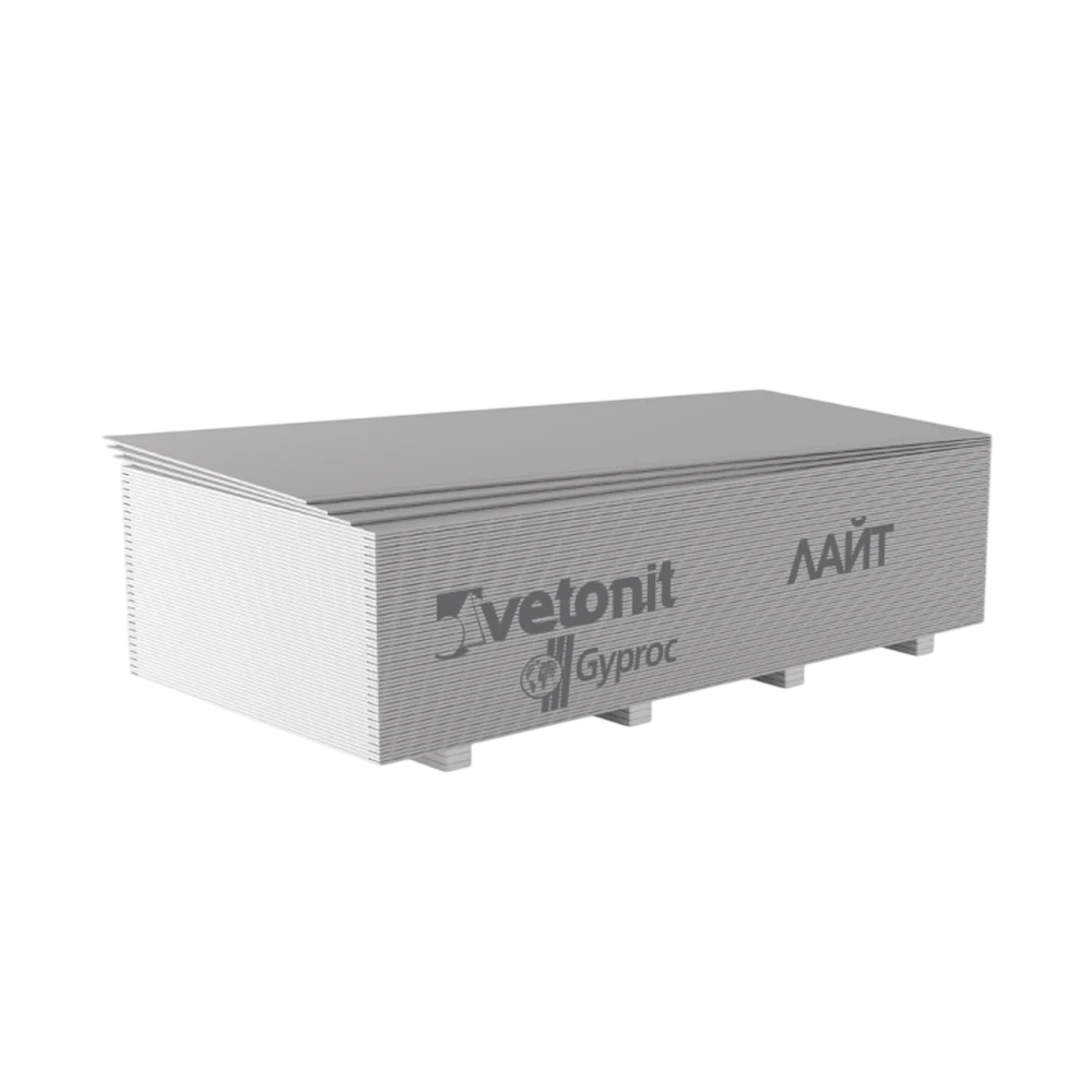 Гипсокартонный лист Vetonit Gyproc Лайт размером 2000х1200 мм и толщиной 9,5 мм используется для потолков и лёгких внутренних конструкций в сухих помещениях. Материал подходит для внутренней отделки и формирует ровное основание под дальнейшую финишную обработку.