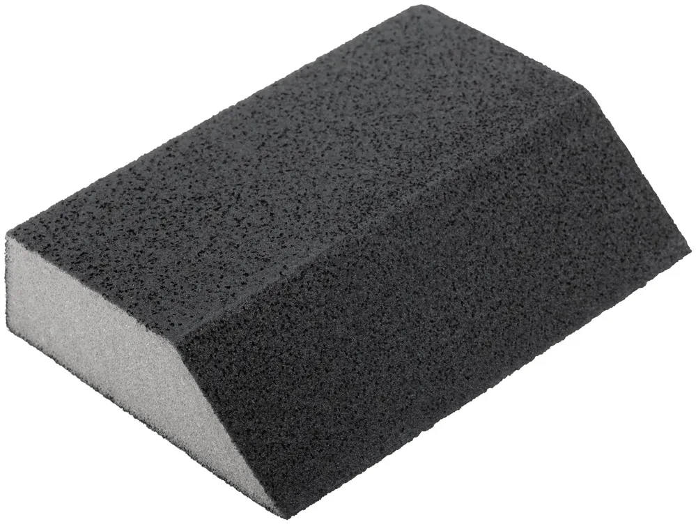 - Губка шлифовальная угловая, алюминий-оксидная, 100х70х25 мм, средняя жесткость Р 120 — универсальная модель, которую выбирают за сочетание мощности, удобства и ресурса