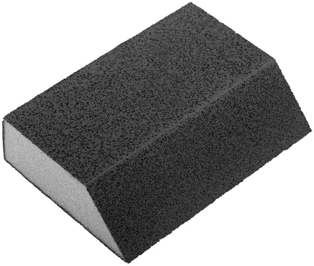- Если нужен надежный инструмент без лишних усложнений, обратите внимание на Губка шлифовальная угловая, алюминий-оксидная, 100х70х25 мм, средняя жесткость Р 360