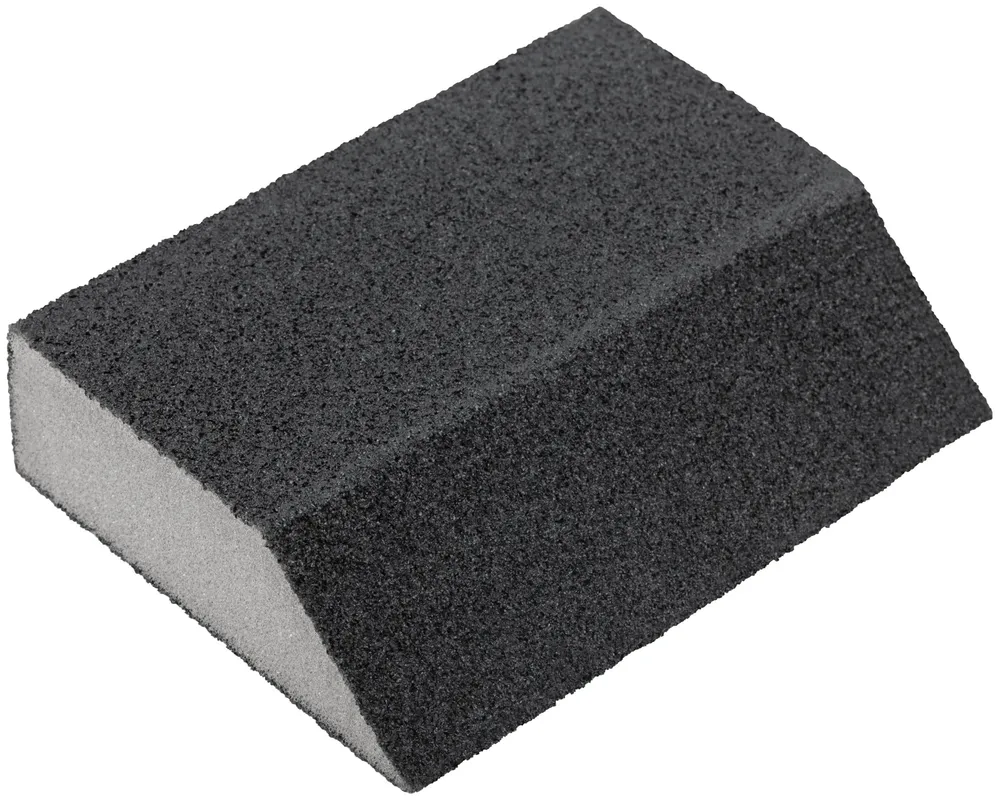 - Губка шлифовальная угловая, алюминий-оксидная, 100х70х25 мм, средняя жесткость Р 60 подходит для ежедневной работы и помогает быстро справляться с типовыми задачами