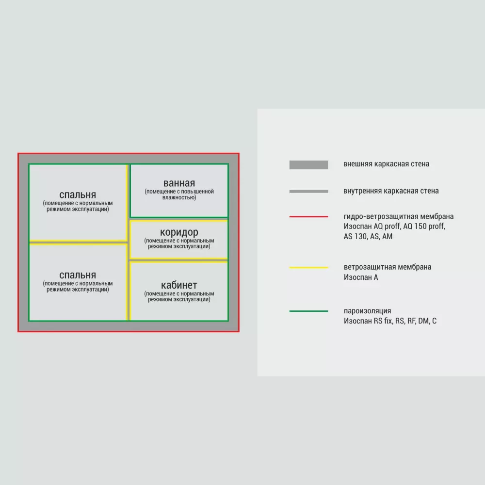 - Водоупорность: Защищает утеплитель от проникновения осадков и конденсата.