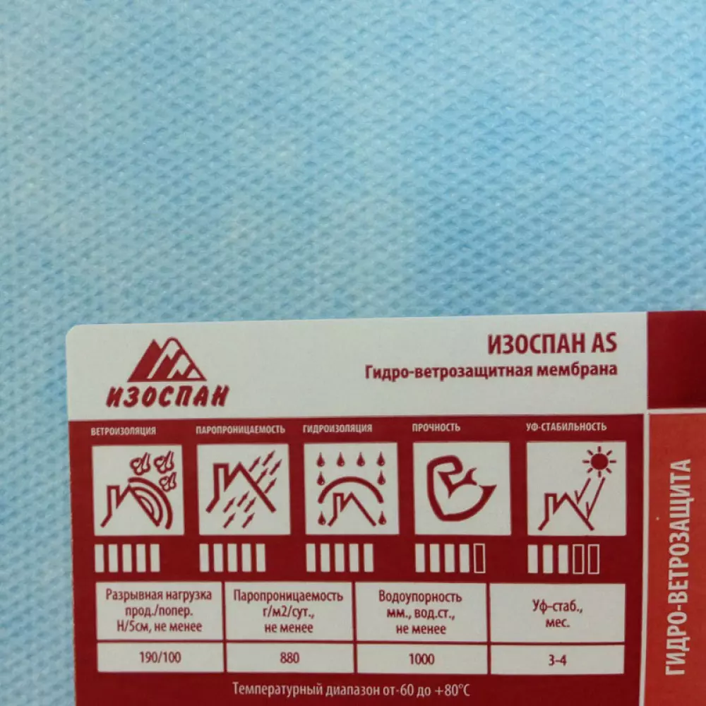 Изоспан AS представляет собой трехслойный материал для защиты от ветра и влаги, выполненный в виде полимерной мембраны с мелкими порами, с обеих сторон покрытой нетканым полипропиленовым полотном. Он обеспечивает надежную защиту от продувания ветром и проникновения дождя, сочетая отличную водонепроницаемость с высокой паропроницаемостью. Этот материал широко используется в строительстве стен, крыш и различных конструкций, а также способствует увеличению их долговечности и снижению теплопотерь. Производитель предоставляет 10-летнюю гарантию на Изоспан AS.
