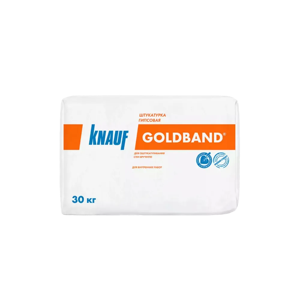 Гипсовая смесь КНАУФ-Гольдбанд предназначена для высококачественного ручного оштукатуривания стен с твёрдым и прочным основанием (кирпичная кладка, цементная штукатурка, плотный и пористый бетон), поверхностей из пенополистирола и ЦСП внутри помещений с нормальной влажностью, включая кухни и ванные комнаты с покрытием, обеспечивающим защиту от увлажнения.