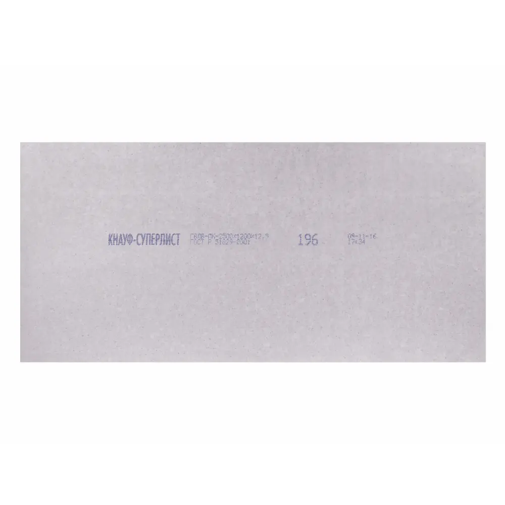 КНАУФ-суперлист влагостойкий (ГВЛ-В1) - однородный материал с высокой плотностью. Производится по ГОСТ Р 51829-2022 прессованием смеси гипсового вяжущего и волокон распушенной макулатуры.
