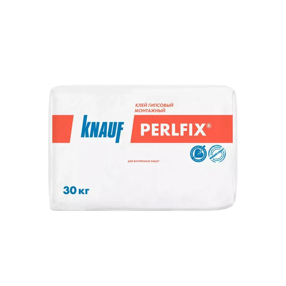 Клей гипсовый «Кнауф-Перлфикс» — сухая строительная смесь для внутренней отделки помещений. Используется для бескаркасного монтажа листового гипсокартона, минеральных утеплителей, пазогребневых плит, гипсовых панелей и декоративных элементов на бетонные и кирпичные основания. Изготовлен из натуральных природных материалов, не содержит вредных для человека веществ; практически не имеет запаха. Клей отлично разводится и быстро схватывается, обеспечивая повышенное сцепление даже с неровной поверхностью.