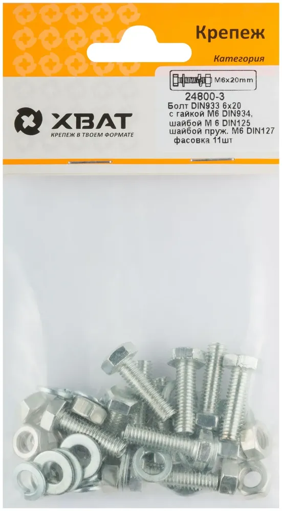 - Комплект:Болт DIN933 6х20