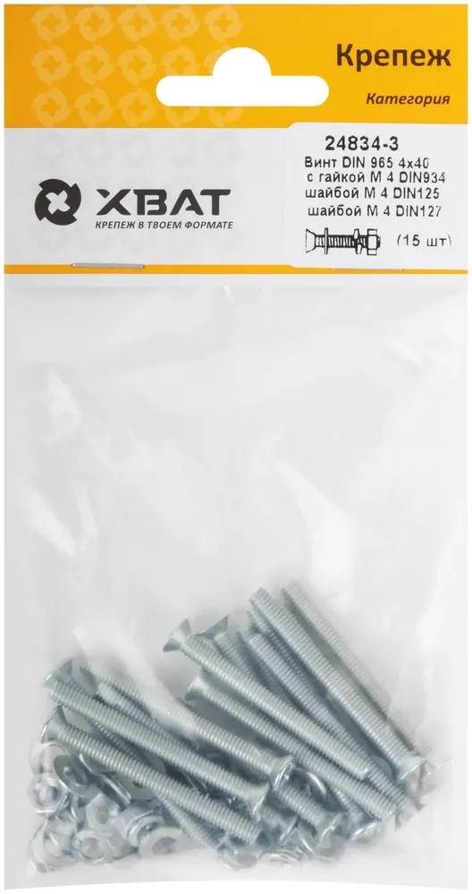 Купить Комплект: Винт DIN965 4х40, с гайкой М4 DIN934, шайбой М 4 DIN125, шайбой М 4 DIN127 (фасовка 1510 по выгодным ценам в Москве