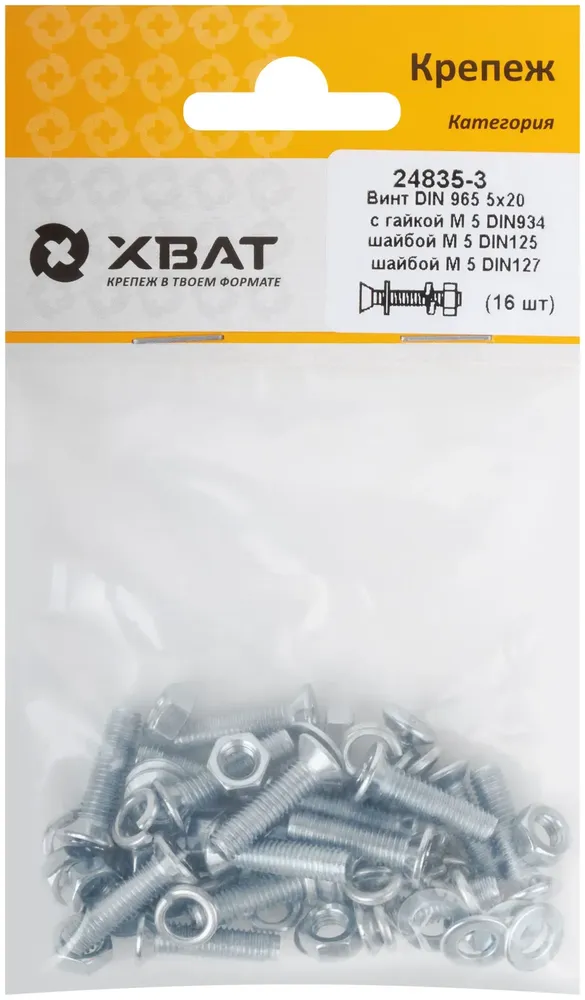 Купить Комплект: Винт DIN965 5х20, с гайкой М5 DIN934, шайбой М 5 DIN125, шайбой М 5 DIN127 (фасовка 1610. по выгодным ценам в Москве