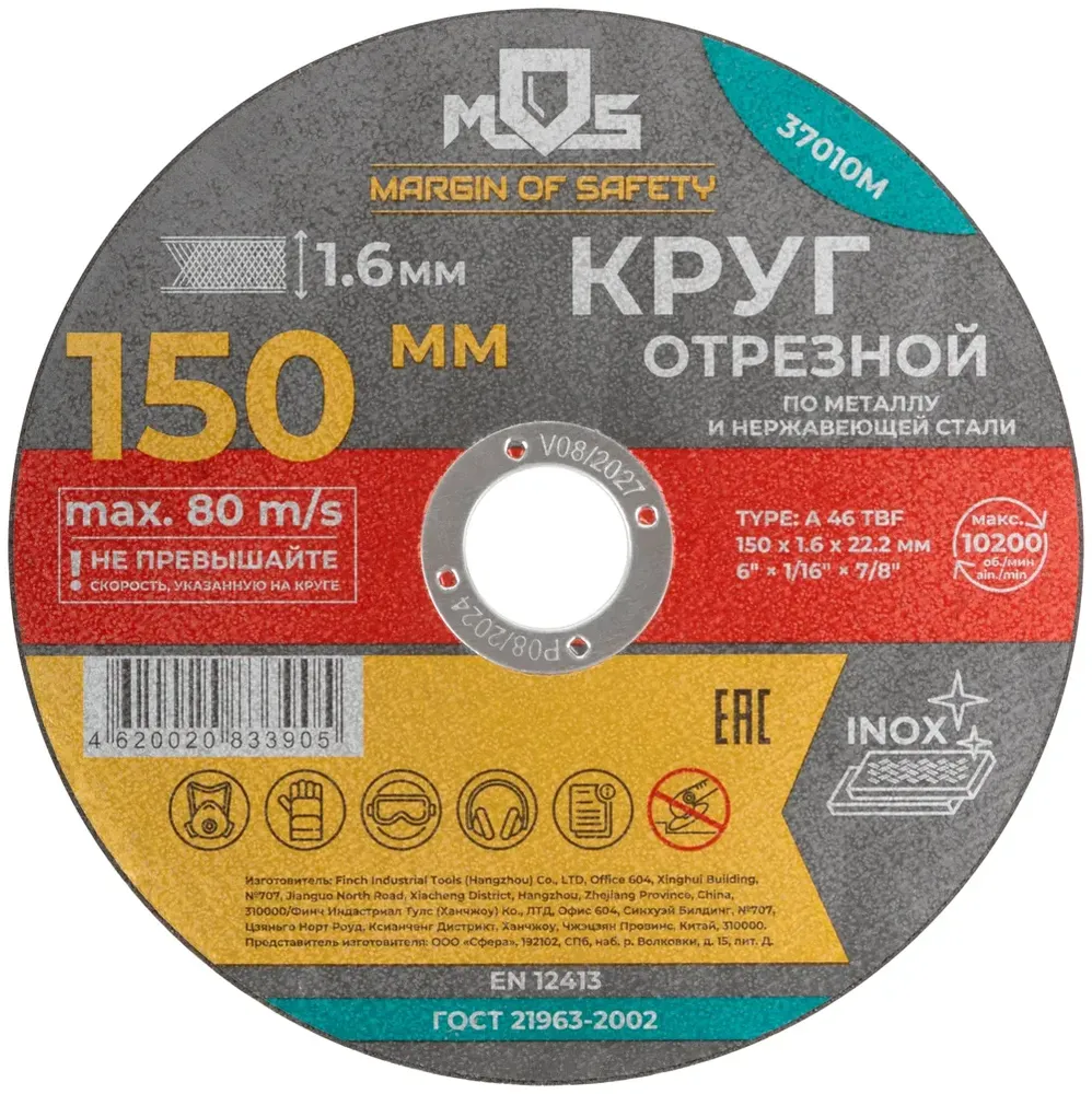 - Круг отрезной по металлу MOS, посадочный диаметр 22,2 мм, 150х1,6 мм подходит для ежедневной работы и помогает быстро справляться с типовыми задачами