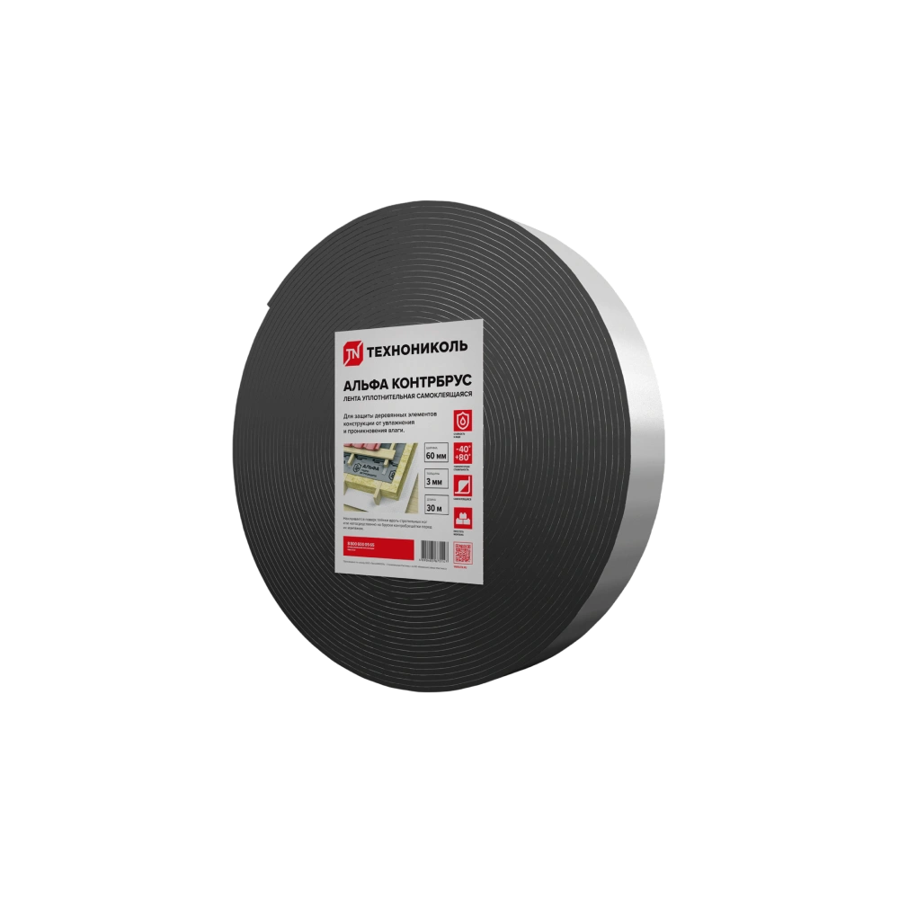 Купить Лента уплотнительная самоклеящаяся ТехноНИКОЛЬ АЛЬФА КОНТРБРУС 60 мм, 30 м. по выгодным ценам в Москве