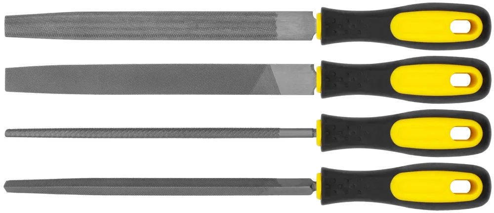 Купить Напильники, прорезиненная ручка, набор 4 10. (трехгранный, плоский, круглый, полукруглый ) 200 мм по выгодным ценам в Москве