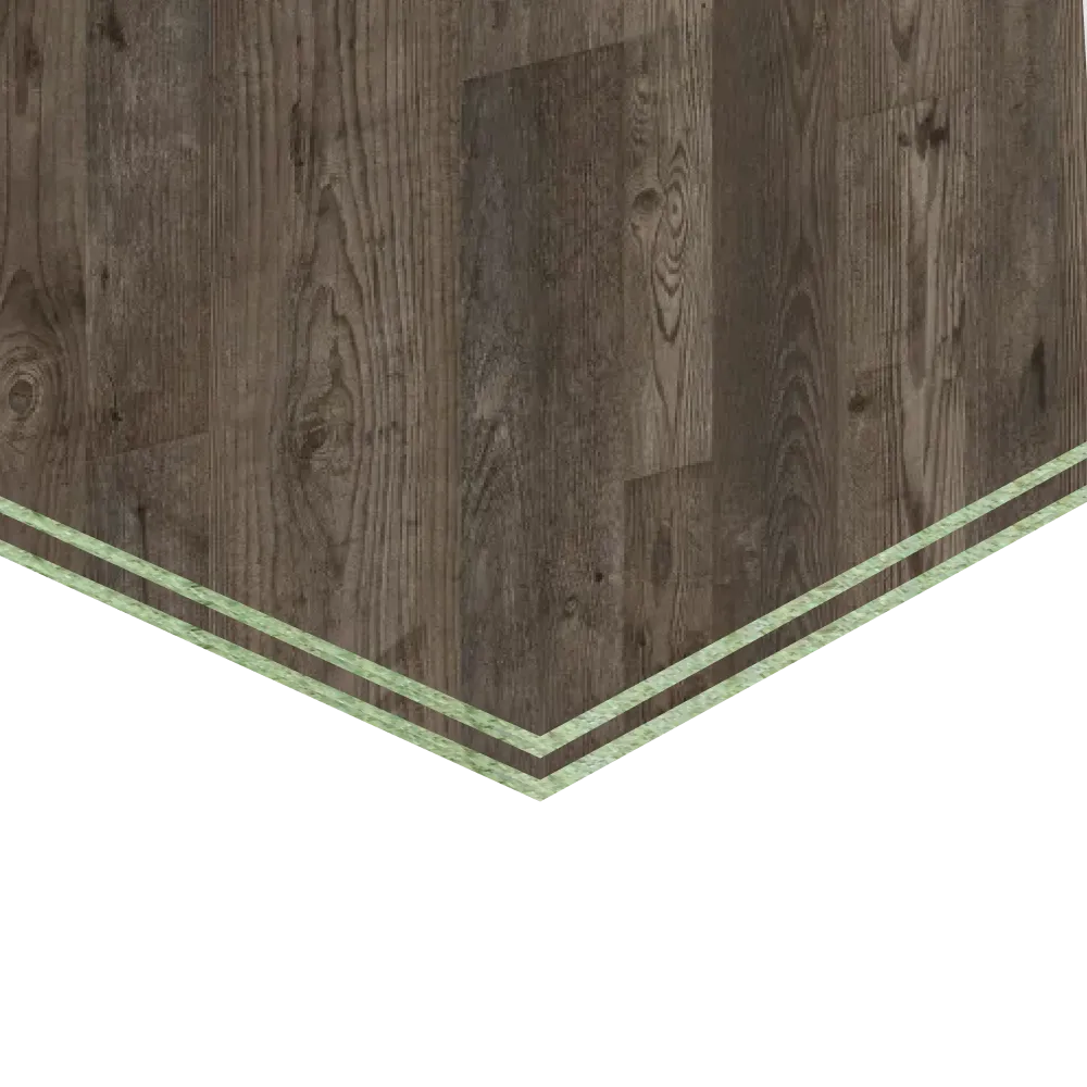 Декоративное покрытие выполнено в темных тонах с имитацией натуральной древесины. Строительную плиту Quick Deck Plus Эдинбург можно использовать как на пол, так и на стены.