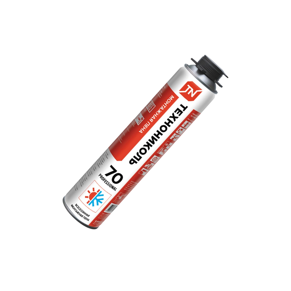 Пена монтажная ТЕХНОНИКОЛЬ 70 PROFESSIONAL всесезонная представляет собой однокомпонентный полиуретановый материал в аэрозольной упаковке. Монтажная пена отличается активным первичным расширением, повышенным объёмом выхода пены. Монтажная пена имеет специальную формулу, которая обеспечивает максимальный выход пены.