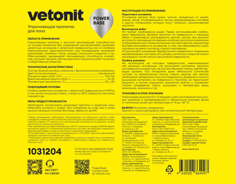 Купить Пропитка для пола Ветонит Vetonit Power Base упрочняющая, 10 л по выгодным ценам в Москве