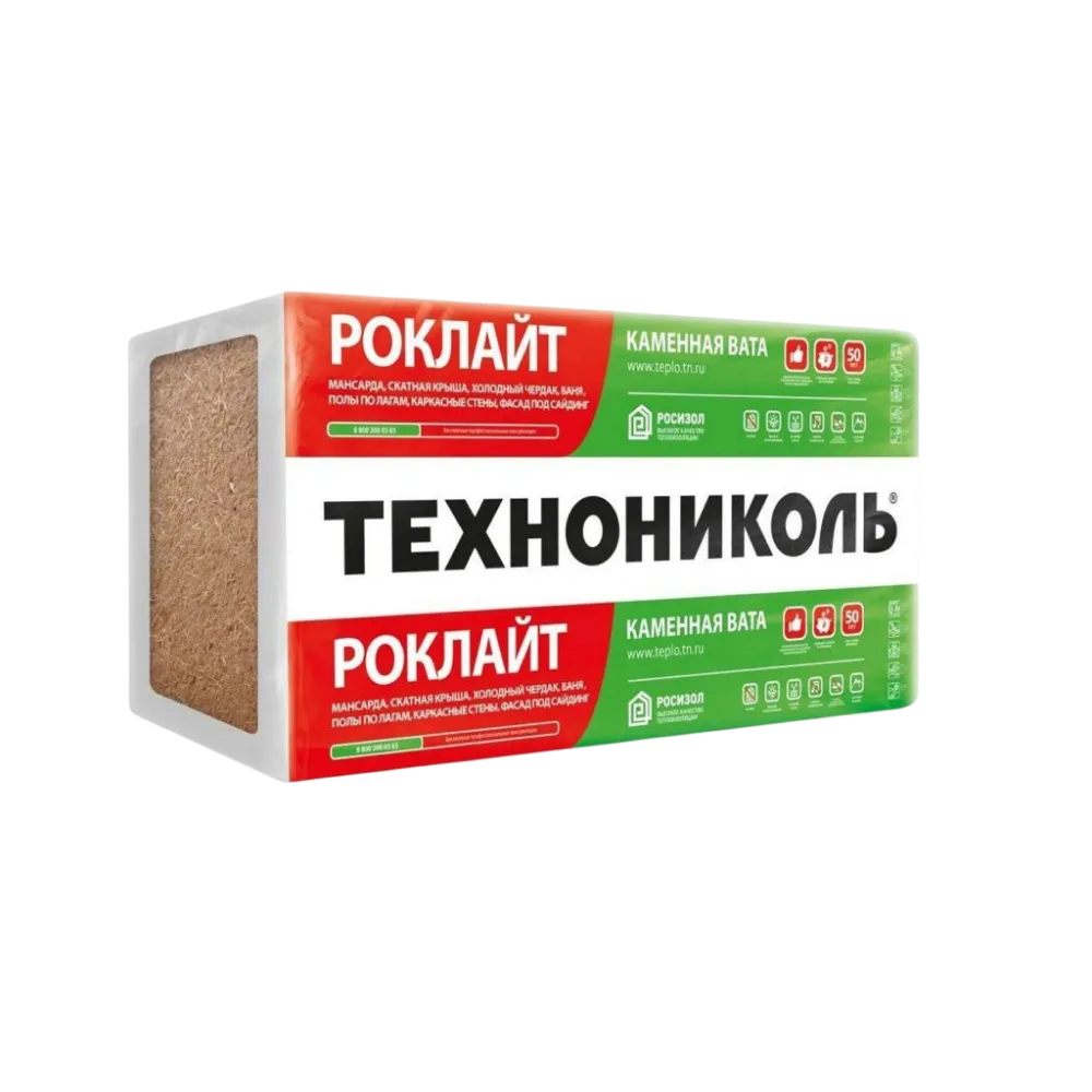 Минераловатная плита Роклайт от компании ТехноНИКОЛЬ изготавливается из щебня горных пород габбро-базальтовой группы. Волокна материала обработаны специальным гидрофобизирующим составом, что обеспечивает защиту от временной влаги во время монтажа.