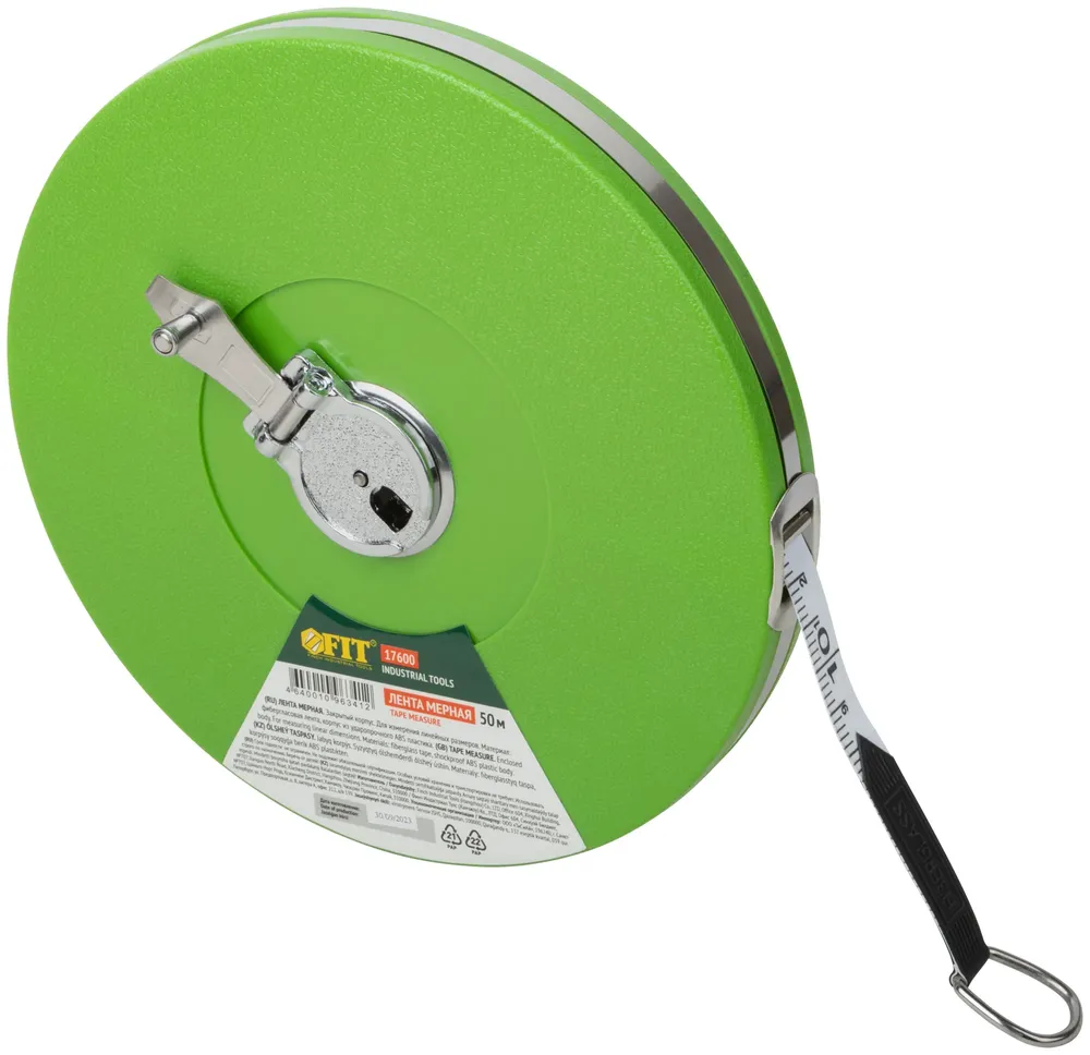 - «Рулетка, фибергласовая лента, зеленый пластиковый корпус 50 м» — практичное решение для бытовых и профессиональных задач