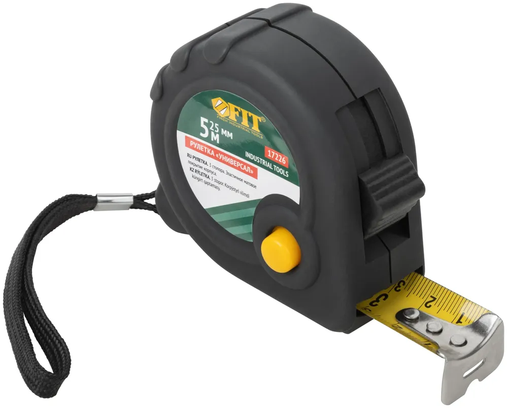 - Рулетка прорезиненный корпус "Универсал", тройной стопор 5 м x 25 мм подходит для ежедневной работы и помогает быстро справляться с типовыми задачами