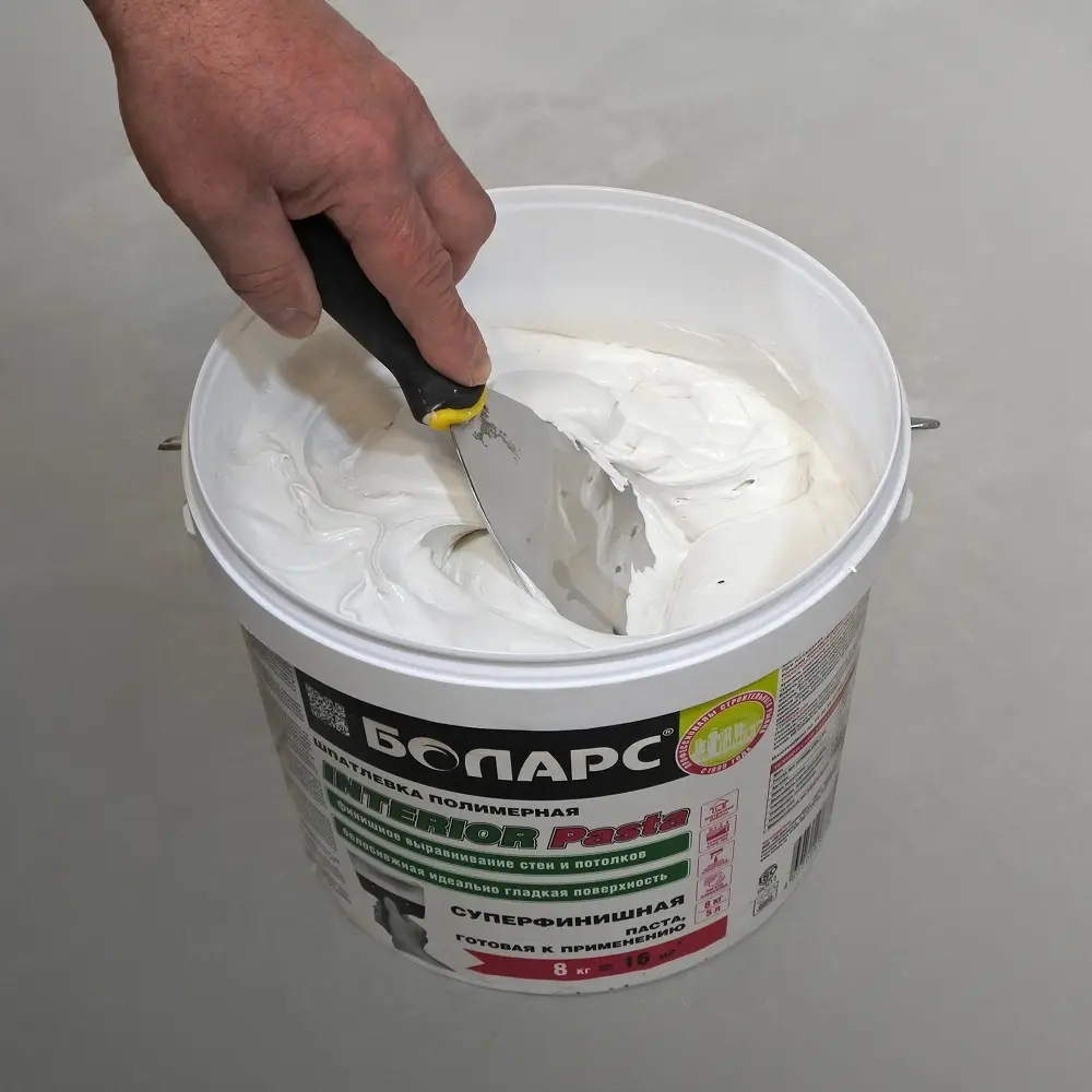 что формирует благоприятный микроклимат в помещении. Для ручного нанесения. Подходит для оштукатуренных цементных и гипсовых поверхностей, Предназначена для высококачественной финишной отделки стен и потолков внутри помещений перед тонкой отделкой декоративными покрытиями и подготовкой оснований к окраске и оклейке обоями. За счет паропроницаемости даёт возможность стенам «дышать», ГКЛ, ГВЛ, ПГП. Обладает высокой адгезией. Легко Можно наносить. Образует идеально гладкую, шелковистую, не мелящуюся поверхность. Экологически безопасна, может применяться без ограничений во всех типах жилых и общественных помещений.