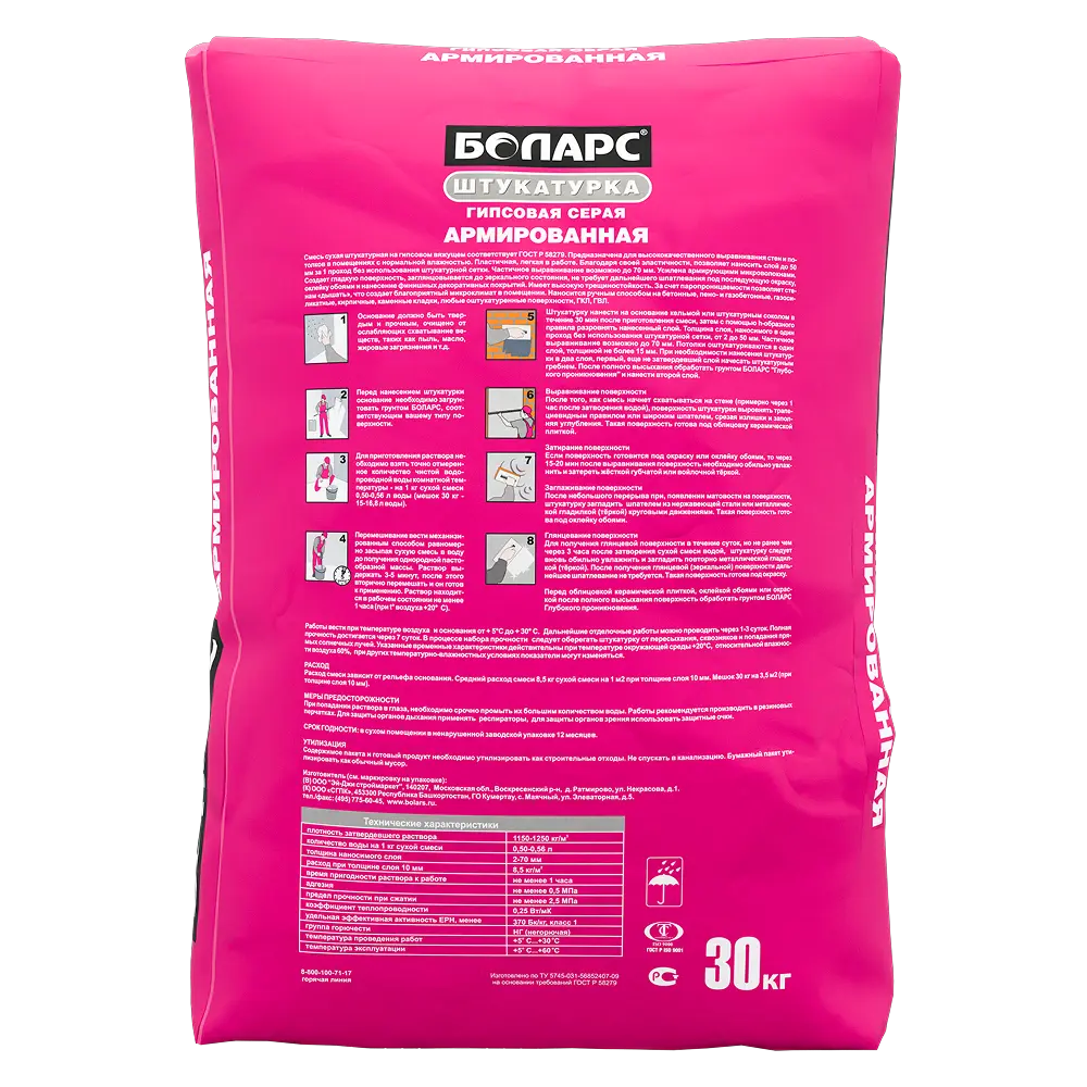 даёт возможность наносить слой до 50 мм за 1 проход без использования штукатурной сетки. Частичное выравнивание возможно до 70 мм. формирует гладкую поверхность, Усилена армирующими волокнами. Благодаря своей эластичности, заглянцовывается до зеркального состояния, не требует дальнейшего шпатлевания под дальнейшую окраску, оклейку обоями и нанесение финишных декоративных покрытий. Имеет высокую трещиностойкость. Паропроницаемая. Можно наносить ручным способом на бетонные, пено- и газобетонные, газосиликатные, кирпичные, каменные кладки, любые оштукатуренные поверхности, ГКЛ, ГВЛ.