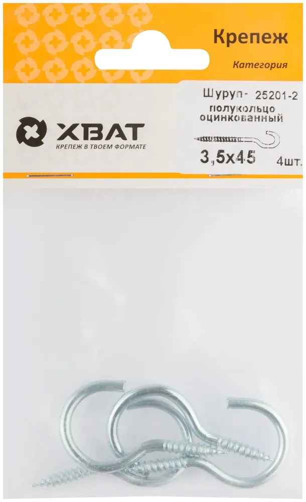 - Шуруп-полукольцо оцинкованный 3,5 х 45 (фасовка 4 10) подходит для ежедневной работы и помогает быстро справляться с типовыми задачами