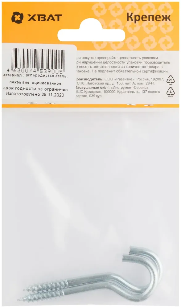 - Шуруп-полукольцо оцинкованный 5,0 х 65 (фасовка 2 10) подходит для ежедневной работы и помогает быстро справляться с типовыми задачами
