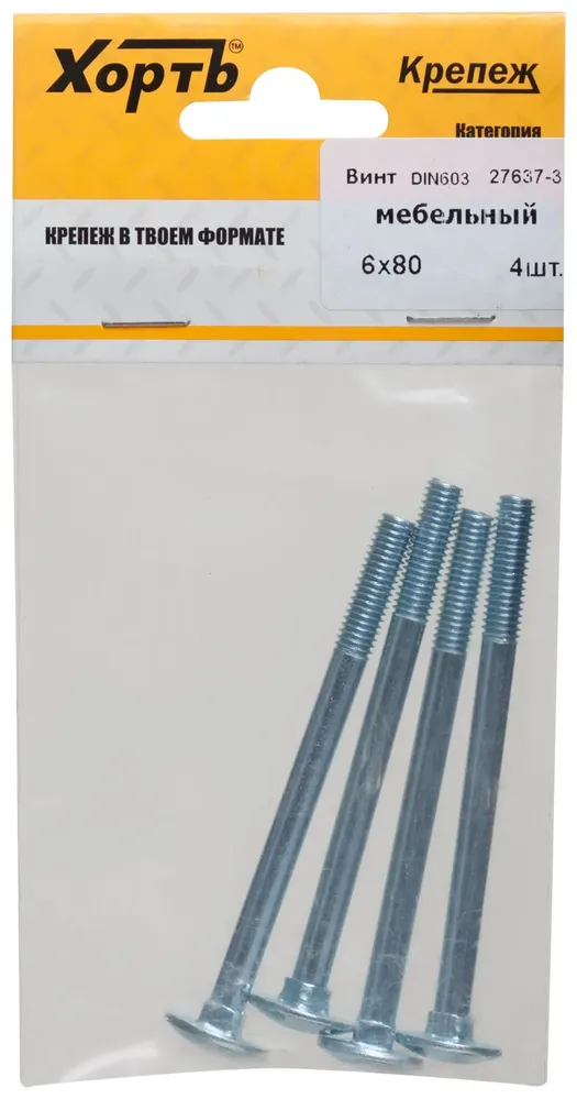- Винт мебельный (DIN 603) 6х80 (фасовка 4 10) — универсальная модель, которую выбирают за сочетание мощности, удобства и ресурса