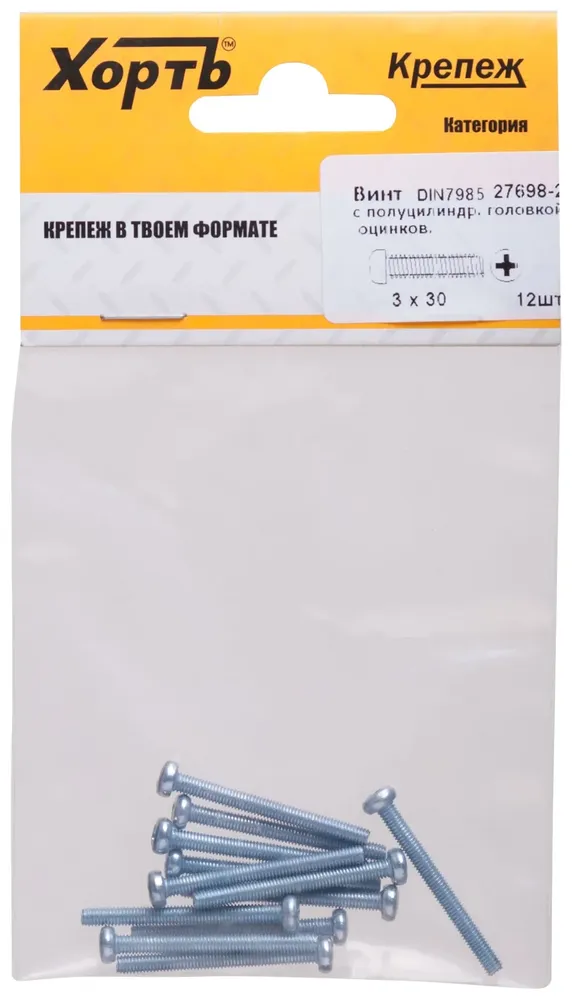 Купить Винт с полуцилиндрич. головкой с полной резьбой оцинков. DIN 7985 3х30 12 10.(фасовка) по выгодным ценам в Москве
