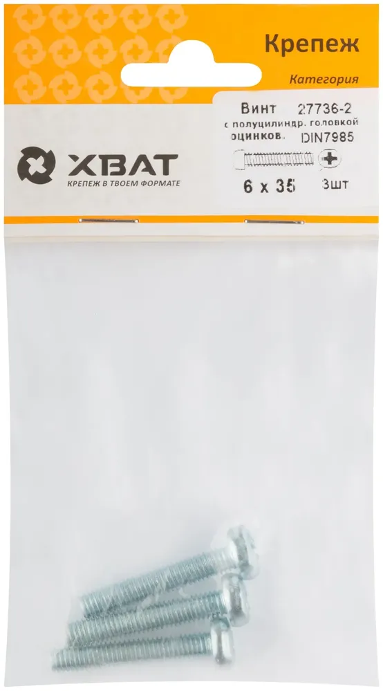 Купить Винт с полуцилиндрич. головкой с полной резьбой оцинков. DIN 7985 6х35 3 10.(фасовка) по выгодным ценам в Москве