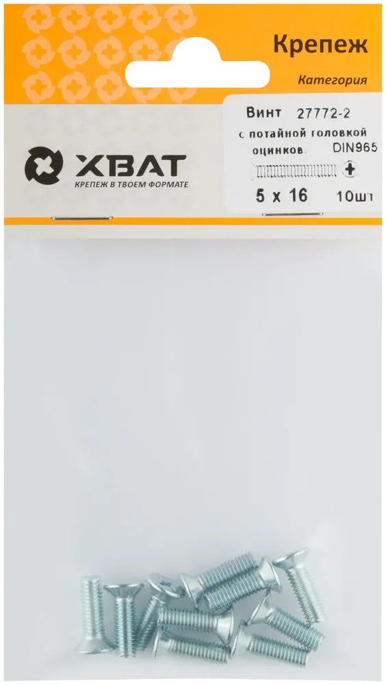 - Винт с потайной головкой с полной резьбой оцинкованный DIN 965 5х16 10 10