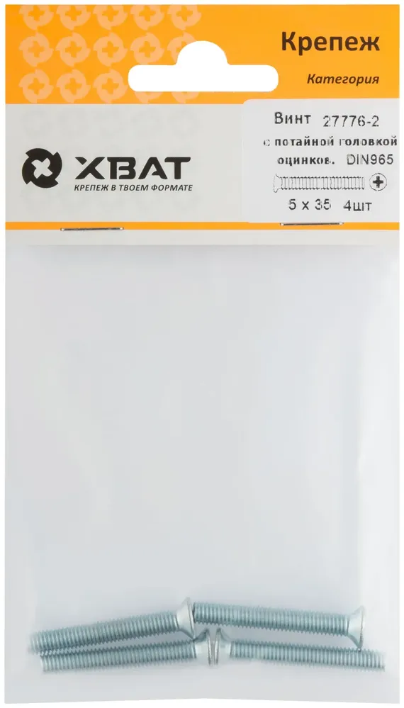 Купить Винт с потайной головкой с полной резьбой оцинкованный DIN 965 5х35 4 10.(фасовка) по выгодным ценам в Москве