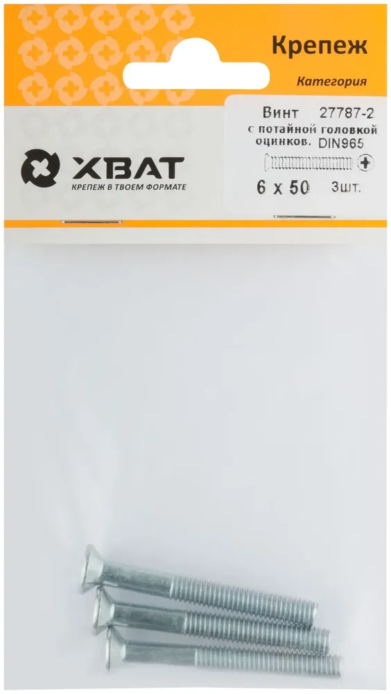 - Винт с потайной головкой с полной резьбой оцинкованный DIN 965 6 х 50 3 10 (фасовка) — универсальная модель, которую выбирают за сочетание мощности, удобства и ресурса