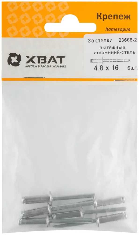 Купить Заклепки вытяжные комбинированные, алюминий-сталь 4,8 х 16 (фасовка 6 10.) по выгодным ценам в Москве